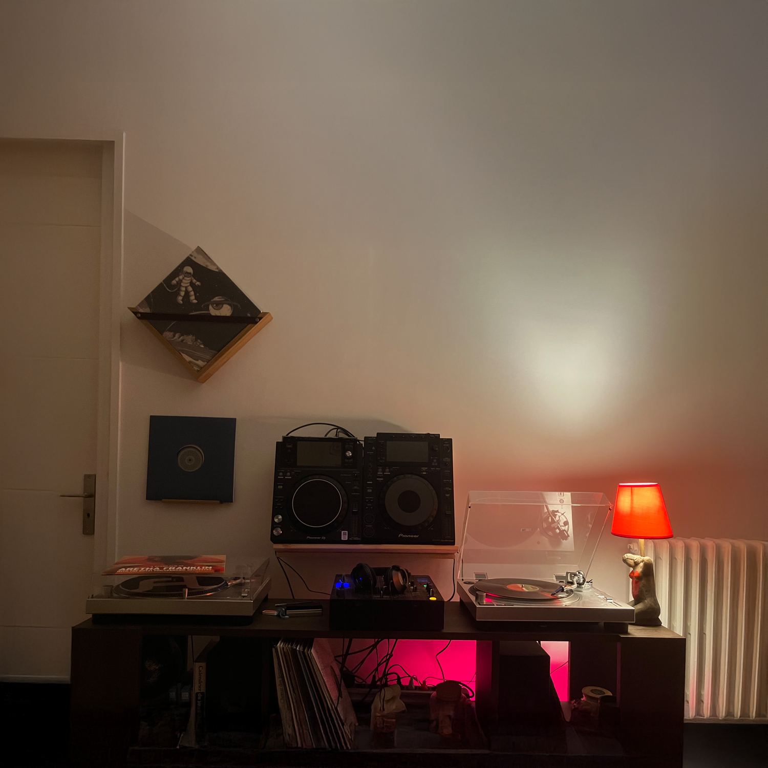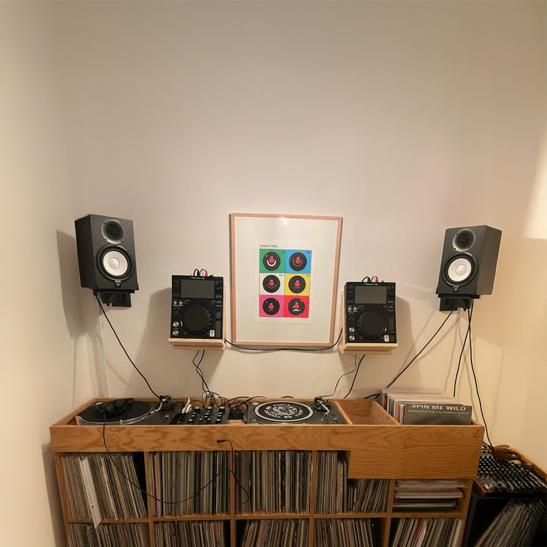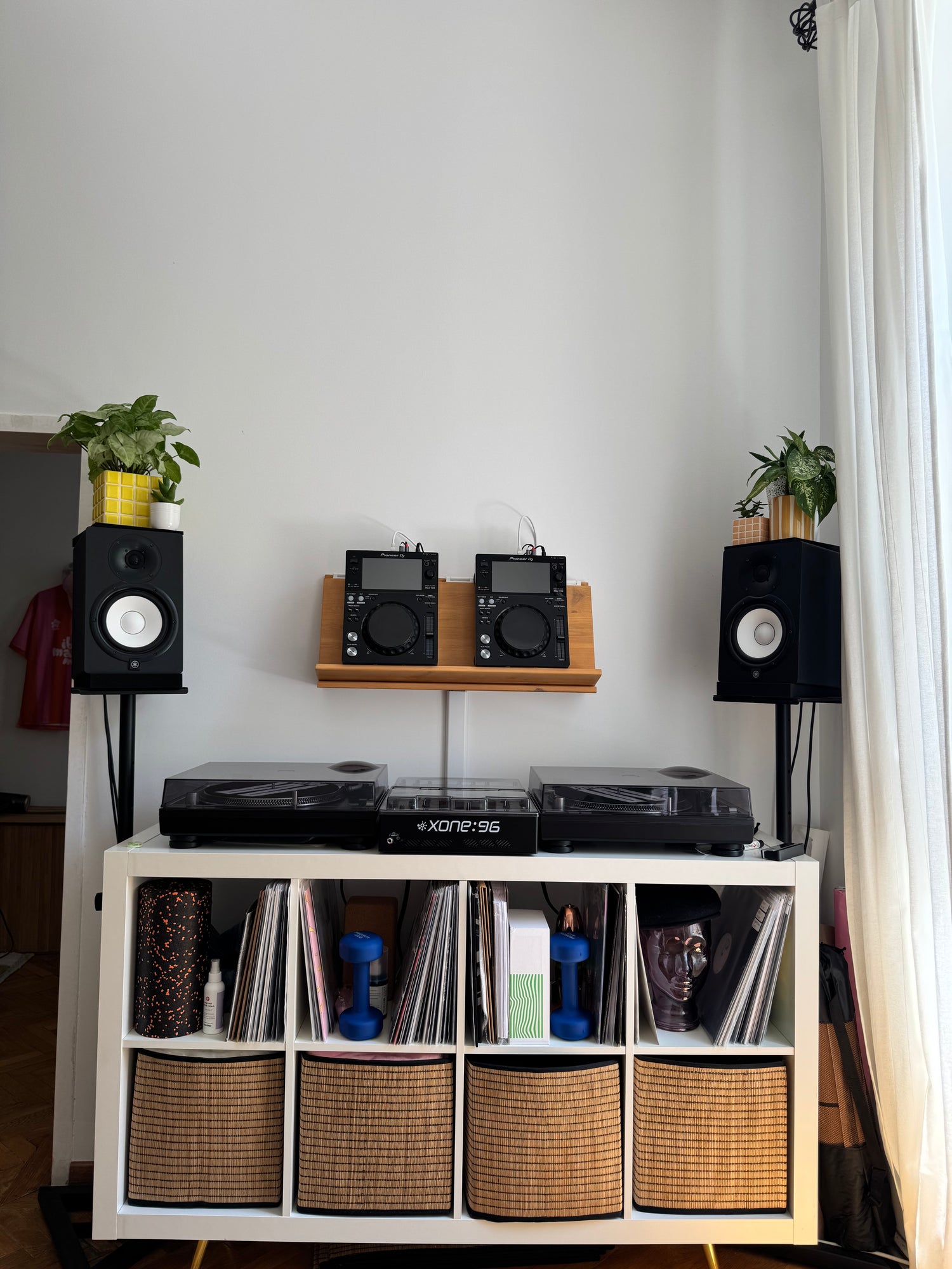 V1- wall mount for 2x XDJ 700 (painted in dark oak)